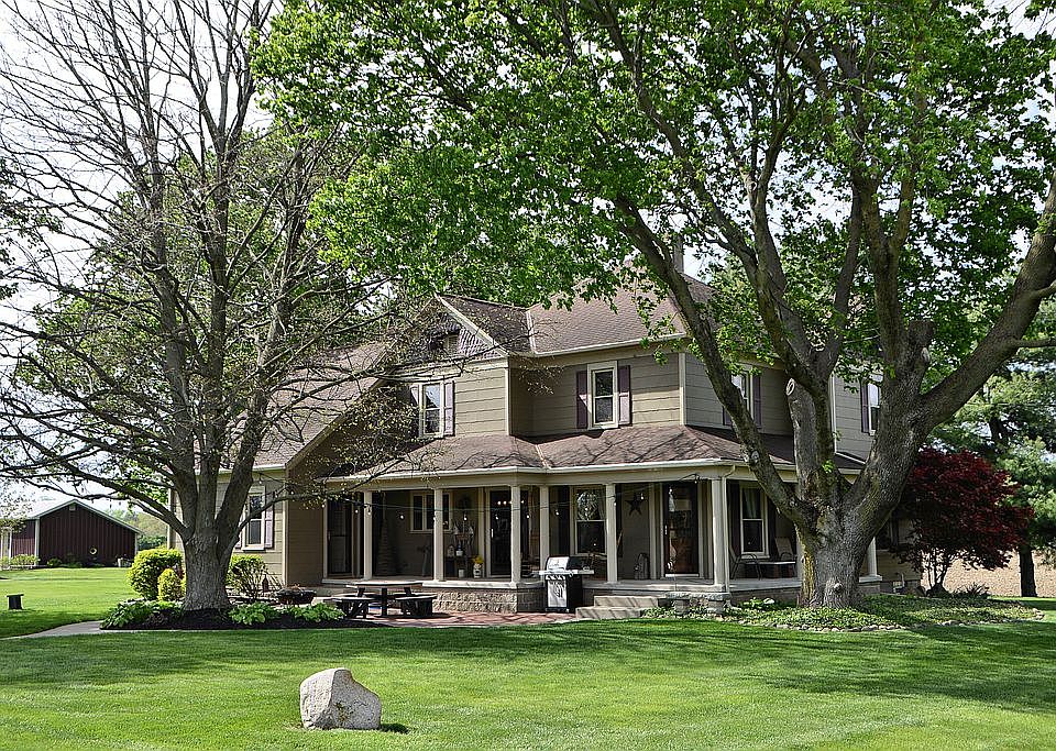 This is a beautiful farmhouse set on approximately 2 acres. The house was originally built in 1915 but has been fully remodeled. The kitchen/dining room and downstairs bathroom were remodeled in 2017. The barn (76*32) with a loft was built in 1864 but was upgraded in 2014 with siding, a roof, and garaging for two cars. Master bath was updated in 2023. There is an additional outbuilding that is 30*18. You will enjoy the fresh air, space to roam, campfires, and gorgeous sunsets. This is a great home for a family to create lots of memories.