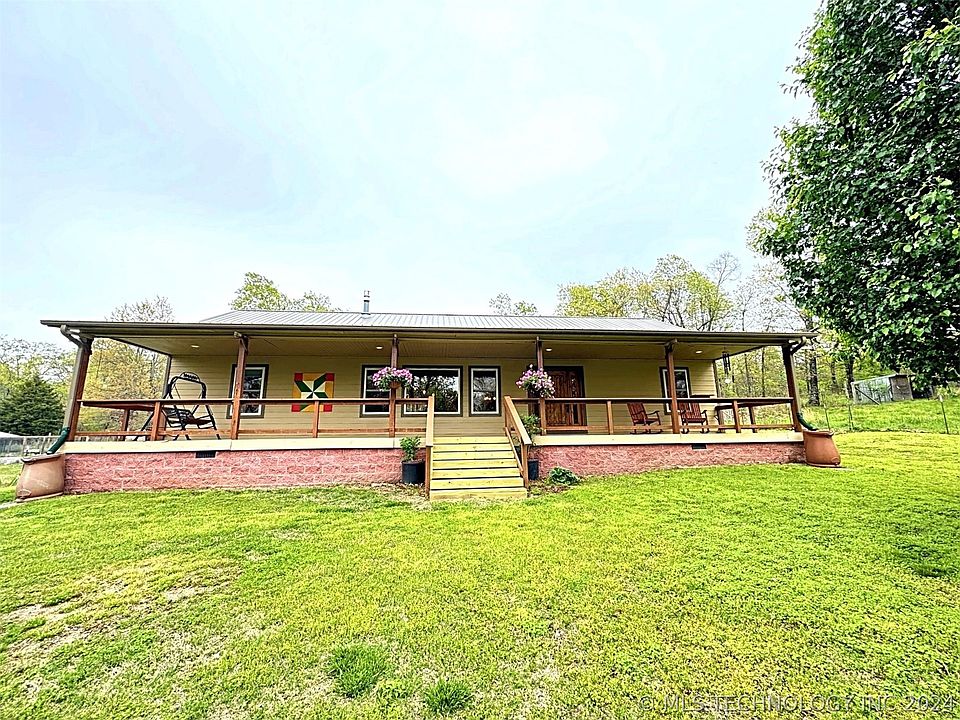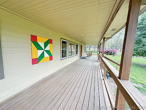 Discover the perfect blend of comfort and functionality in this 1935 SF (per AP) home, a timeless gem built in 2011. The expansive open floorplan creates a welcoming atmosphere, with vaulted ceilings enhancing the sense of space. The highlight of this residence is the HUGE dining room, providing an ideal setting for memorable gatherings. The spacious kitchen boasts an abundance of cabinets and a large center island, making it a chef's dream. Designed for entertaining, this home is handicap accessible, ensuring that everyone can join in the festivities. Imagine hosting friends and family in a space where the flow is seamless, and room for a large gathering is never an issue. Indulge in the beauty of nature from the 10x60 covered front porch, where you can watch the sun set in tranquility. Alternatively, start your day with the breathtaking sunrise from the large back deck. The property spans 5.43 acres, inviting you to bring your horses, cows, chickens and goats. The cross-fenced area adds to the practicality, allowing for organized and efficient management of your animals. Built to stand the test of time, this home features 2x6 exterior walls and is well-insulated with additional insulation on the north end. New flooring in 2020 adds a touch of modernity to this enduring structure. A 30x50 shop with a full bath and woodstove provides versatile space that can serve as living quarters or an office, offering endless possibilities for customization. The property boasts numerous outbuildings, including a goat barn, shed, chicken coop, storm shelter and more, catering to the needs of both homeowners and their furry or feathery friends. The grated entrance off the paved road ensures easy access to your private haven. Welcome to your dream home, where every detail has been carefully considered to provide a living experience that is truly exceptional.