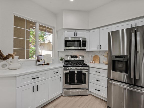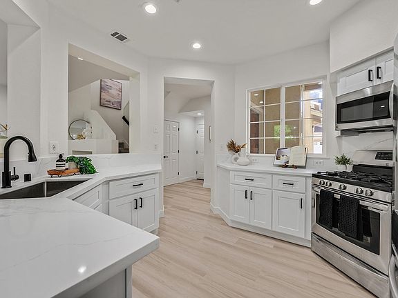 - Features: Counter - Solid Surface, Dishwasher, Gas Range/Cooktop, Microwave, Range/Oven Built-in, Refrigerator, Updated Kitchen