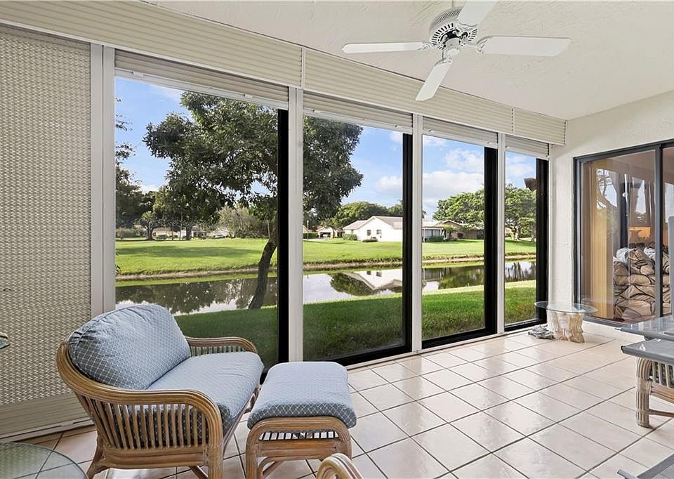 This adorable waterfront villa is located in The Villas of Waterberry a boutique community in Boca Raton! Beautifully maintained this home is situated on a corner lot with the best water views in the community. Freshly painted, updated corian kitchen counter tops, plantation shutters adorn the windows. Tons of interior storage, 2 parking spaces right at the front door. New paver walkway to a covered front porch. Updated electric throughout, primary bedroom has a walk in closet and sliding door to the enclosed Florida room. Enjoy countless hours, playing cards, having a coffee and entertaining in the glass enclosed patio. Unobstructed views of the lake and green space.