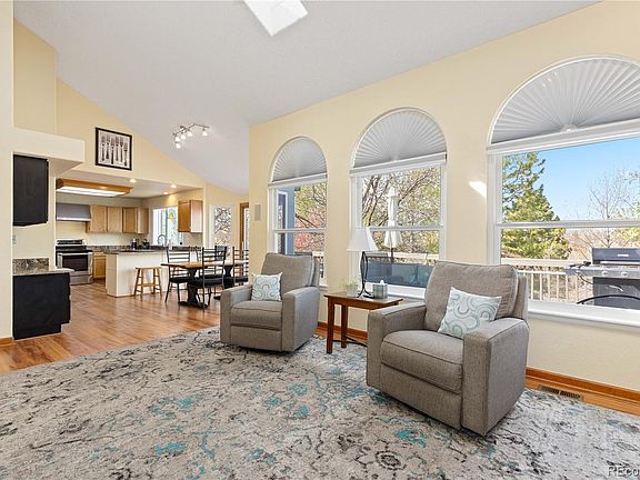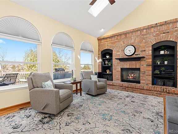Welcome to this stunning two-story home, ideally situated in a fantastic neighborhood on a south-facing lot surrounded by mature trees. With fresh exterior paint with a transferable warranty and great curb appeal, this home offers timeless design and thoughtful updates throughout. A grand staircase greets you upon entry, paired with soaring ceilings that create a bright and open atmosphere. The main level features formal living and dining rooms, and a cozy family room with vaulted ceilings, skylights, a striking brick accent wall, built-ins, and a warm fireplace perfect for gathering. New modern Lifetime LVP flooring, installed in 2021, adds a fresh, updated feel. The spacious kitchen includes beautiful granite countertops, sleek appliances, a large pantry, and plenty of counter space. An eat-in nook offers casual dining, while the formal dining room is ideal for hosting. A main-floor office with built-in shelving provides a dedicated workspace filled with natural light. Upstairs, the expansive primary suite is a true retreat with elegant finishes, a beautifully remodeled en-suite bathroom completed in 2025, and a generous walk-in closet. All secondary bedrooms include ceiling fans for added comfort, and UV protection on front-facing windows enhances energy efficiency. The finished basement, remodeled in 2018, features a large recreation room with a kitchenette, a home theater, an additional bedroom and bathroom, and walk-out access to a private backyard patio. Step outside to enjoy mountain views from the large deck, a backyard shed for extra storage, and well-maintained landscaping. A dedicated storage room with built-in heavy-duty shelving provides excellent organization, and the three-car garage offers ample space for vehicles and gear. With multiple parks nearby, top-rated schools, and convenient access to shopping, this beautifully maintained home checks every box for comfort, style, and location.