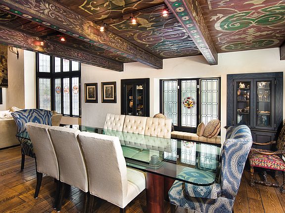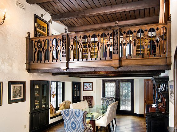Perhaps inspired by the name of the street on which it is locate, this stately Baronial 5 bedroom 5 full & 3 half bath home is privately situated on a slight rise at the end of the tree-lined lane. Castlebridge, as welcoming as it is impressive, presents with an extraordinary graduated multi-colored slate roof, generous arrival courtyard and 3 car attached garage. Glimpses of the pool, fully outfitted & conditioned pool house, side yard & fenced gardens and a charming lit cupola atop an executive office with concealed access to an impressive thermostatically controlled wine cellar. A custom entry door opens to a two-story great room/dining room, brightened by custom leaded glass windows & warmed by a large stone surround fireplace. Steps away is a first level master suite with marble bath, under window jetted tub, steam shower & his and her closets. A fireplace with inglenook & double doors to a deep balcony overlooking the rear yard & fire pit complete the master retreat which was exceptionally styled, considered & customized to the seemingly smallest detail with interior direction by avant-garde designer, Marguerite Rogers. Sensitive to maintaining the character & style of the residence a bespoke English kitchen by Mark Wilkinson blends seamlessly into the Breakfast room/Conservatory. Designed in England, shipped & reconstructed piece by piece on site, the vaulted steel, wood & glass conservatory provides sweeping views of the 1.04 acres & access to a walled stone terrace & inset gas grill. An additional bedroom with exquisitely tiled full bath, two story sky-lit gym, once purposed as an art studio, dog room, large laundry & connection to both the independent office as well as lower level are found on the western exposure of the home. Descend to a one of a kind home theater and game room. Deep coffered ceiling highlighted with custom milled design elements incorporating architectural antiques from the owner's extensive travels, adjacent bar with Miele dishwasher, refrigerator and media component storage. The arcade with 10 foot ceilings & deco inspired half bath complete the lower level entertaining area. At garden level, find three large guest or family bedrooms & three full baths, as well as a large additional tile floored family space with double door exit to pool. Truly a remarkable and must-see property. 2018-10-12