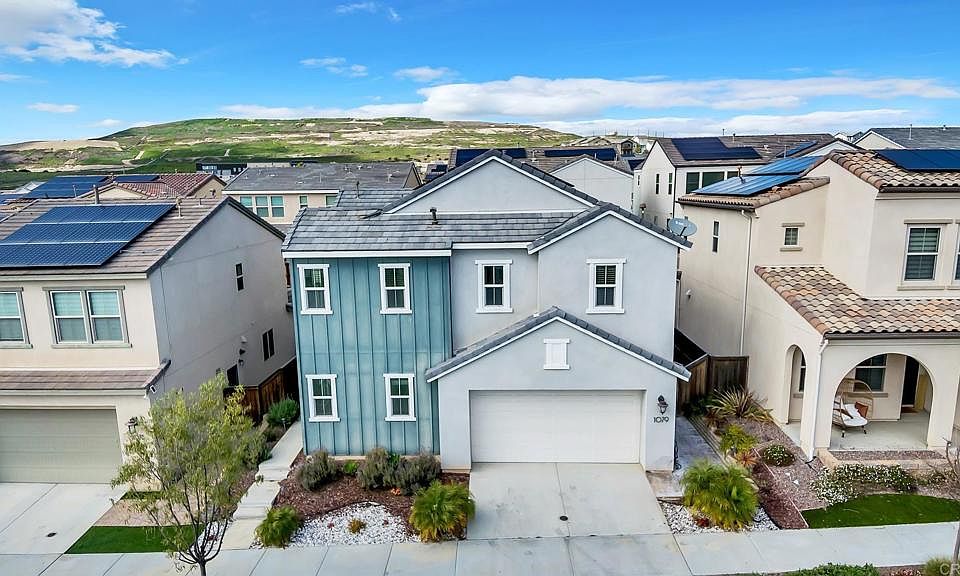 Welcome to this beautiful 4-bedroom, 3-bath community in Village of Escaya, located in eastern Chula Vista. This 2-story home boasts an open concept of living, is MOVE-IN ready, complete with large windows and high ceilings creating a light & bright atmosphere. Highlighted features and upgrades: BRAND NEW Vinyl flooring throughout, FRESH PAINT, quartz countertops, stainless steel appliances, water feature, window shades/coverings, UV windows, smart home features, recessed lighting plus more! Embrace green living with solar panels, providing both sustainability and cost savings. The garage is prewired with dedicated outlets, and a hard-wired EV charger caters to your contemporary needs. Immerse yourself in the meticulously landscaped surroundings, featuring automatic irrigation. The upstairs area features an open space loft. The spacious Master Suite comes ready for your relaxation and spa feel with a separate tub, shower, and other bathroom amenities. The Master Suite's closet is spacious, a wardrobe lover’s dream. There is a downstairs bedroom with a separate but nearly attached complete bathroom. All bedrooms have built-in closet systems. This residence is a testament to thoughtful design and contemporary living. Come experience this modern gem and the luxury & comfort it has to offer!