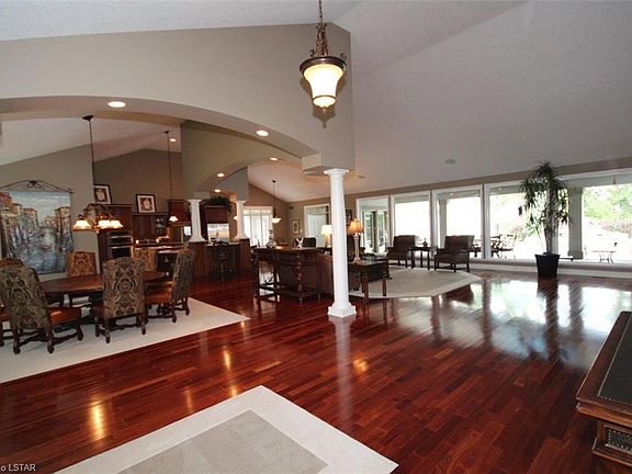 High upon an knoll in beautiful Bryon Estates, amid castle & chateau designed homes sits a truly unique paradise. From the 6' x 8' shower with privacy rainfall glass to the 13 x 17 dream closet this 3,896 sq foot 1 floor home is a true paradise. The full size hot tub off the master bedroom leads to a completely private pool with a custom waterfall for summer enjoyment. The heated sidewalks and driveway make the winters hassle free. For a larger family there are 3 lower level suites, gym, games room with second staircase. The over sized main floor office provides the potential for a second master suite on the main floor.The open concept great room is exquisitely decorated with over sized windows looking onto the 15 x 30 covered patio, private pool area and beautifully landscaped yard. The over sized 3 car garage can also be used as a party room with a double overhead door that leads out to the pool. A truly fantastic home for entertaining.