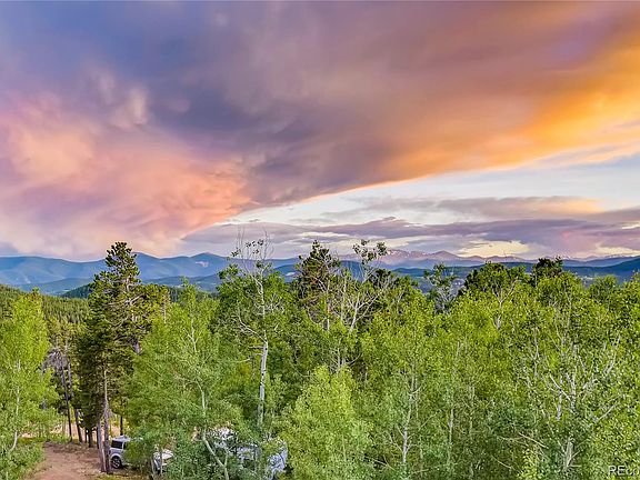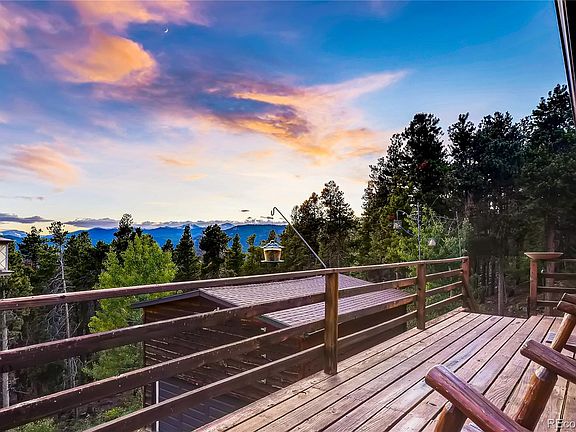 Incredible log cabin with sweeping views of the Continental Divide! Four 14,000 ft mountains & 27 peaks can be counted from your own private deck. Breath-taking views are experienced throughout the home. Outdoor enthusiasts can enjoy the .35-mile rock-lined hiking trail on their 3 acre lot & tech enthusiasts are delighted by 200 Mbps internet speeds & 4-bar cell service! Natural light abounds in the living space feat. exposed wood & mountain views. Eat-in kitchen boasts handmade pine cabinets, quartz countertops, stainless steel appliances & beautiful stained-glass accents. A study, full bath & bedroom w. built-ins are on the main level. Head upstairs to the large bedroom w. ensuite 3/4 bath feat. granite countertops, cedar lined closet & stained-glass accents. Walk-out basement has master bedroom, 3/4 bath w. granite countertops, den, & large storage room. 2-car garage w. extra storage & there is separate RV parking on site. Experience Colorado living at its finest!