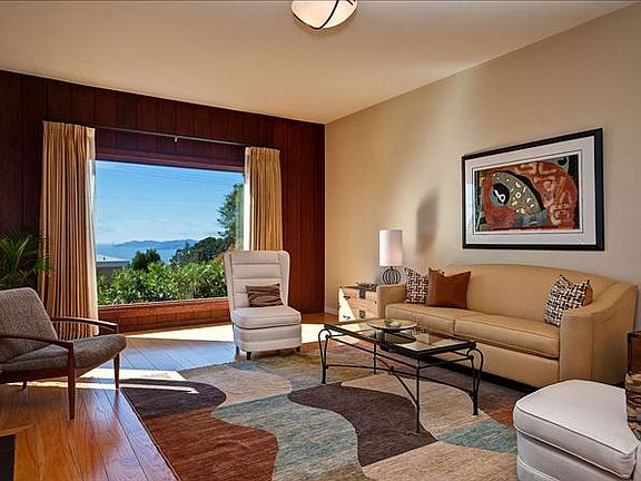 GOLDEN GATE VIEWS! Impeccable 3+ bedroom 2 bath mid-century home. Spacious rooms, views of the garden or San Francisco Bay from every window. Exquisite custom cook's kitchen opens to beautifully landscaped yard with hot tub. Master suite with remodeled bath and bay views. Family room or 4th bedroom downstairs. Interior access from garage. Close to Tilden Park trails, golf course, Lake Anza and the Merry-Go-Round! PERFECT!