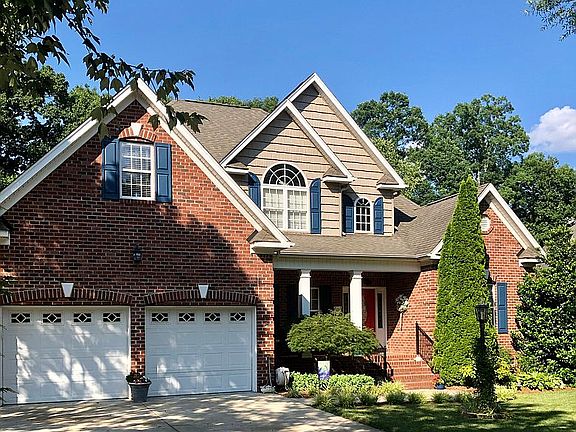 Transitional Home with lovely landscaping and a unique backyard with a bridge and waterfalls into 2 koi ponds. Fully screened and tiled porch, 18 x 20 foot deck and an additional 12 x 12 foot deck cantilevered over the incline. Comes with a 12x16 ft tool shed and a totally fenced in yard. Almost forgot… the built in hot tub off the deck with a view of the stars! The entrance has a cosy front porch adjacent to the leaded glass front door. Inside has 18 foot foyer, formal dining room and vaulted Great Room with hardwood floors and a gas fireplace. Main level Master BR (13 x 19 ft) with lit double tray ceiling and fan. French doors to the deck and easy hot tub access. Pocket door to Master Bath with glass block shower with dual heads and jacuzzi tub. Double sink and vanity space plus spacious walk in closet. Kitchen with newer SS appliances, solid Maple raised panel cabinets, Wine rack, Corian countertops. Tiled floors in kitchen and laundry room. Stacked washer and dryer in laundry room and large built in cabinets. Off the kitchen, is an office with a sliding barn door and perfect space to work from home. Beautiful hardwood staircase with wrought iron and wood banisters. Upstairs there are 3 distinct bedrooms. One with cathedral ceiling, one with a bay bump out, and one FROG. Bathroom with tile. Attic storage galore with pull down stairs. Email is jaryja3@aol.com if interested or call 336-413-5540