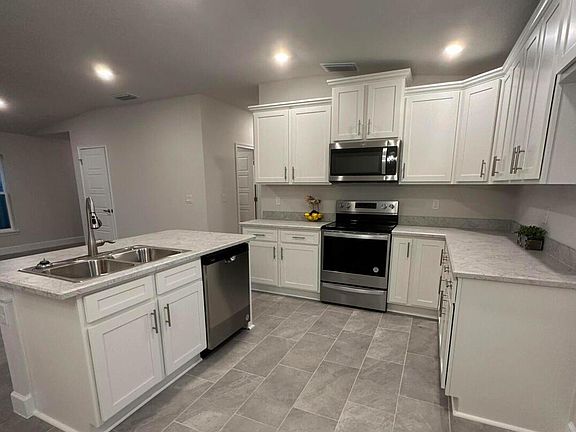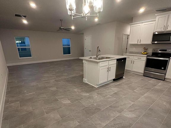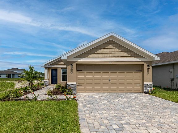 $10,000 FLEX CASH INCENTIVE which can be used for Rate Buy Down, Upgrades, Pre-paids. Estimated payment FHA P&I $2219.00/Mth. Only $1,000 deposit required, and all closing costs paid (excluding escrow accounts), saving you up to $7,500 with our approved lender! NEW CONSTRUCTION. NO CDD!! Desirable Homesite 136 in a new gated community easily accessible from I-95 Exit St. Johns Parkway. This home features a gorgeous paver driveway and stone accents. Enjoy desirable tile in the foyer, great room, kitchen, and baths. Stunning cabinets with crown molding enhance the stainless steel appliances. The owner's suite includes a walk-in closet and a 5' shower in the bath. Additional features include Moen brushed nickel faucets, five-panel doors, and a covered lanai. The community offers a pool with a pavilion. Real estate agents must register buyers at the model home at 1000 Canfield Circle, Palm Bay, FL 32909. Photos are samples; colors and options may vary.