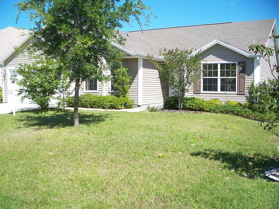 BOND PAID, VILLAGE OF VIRGINIA TRACE, GREAT LOCATION NEXT TO LAKE SUMTER TOWN SQUARE. CUSTOM FLOOR PLAN OFFERS 2 FT STRETCH TO MASTER BEDROOM, LIVING ROOM AND 2ND BEDROOM. DESIRABLE OPEN KITCHEN WITH UPGRADED BISQUE CABINETS AND CROWN MLDGS. TILED FLOORS IN ENTRY, KITCHEN AND BATHROOMS VOLUME CEILINGS, POCKET DOOR, INSIDE LAUNDRY, UPGRADED INTERIOR DOORS , GLASS ENTRY DOOR, ENHANCHED LANDSCAPING, LARGE LANAI FACING NORTH W/PRIVACY LANDSCAPING.