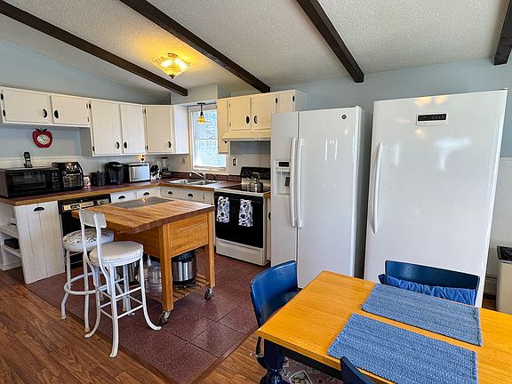 The kitchen includes tile countertops, updated cabinetry, a butcher block island, and a small pantry for extra convenience. Just off the dining area, a 12x22 back deck offers a great space for barbecues, relaxing with friends, or simply enjoying the quiet surroundings. A fenced-in section off the deck is ideal for pets or creating a secure outdoor space.