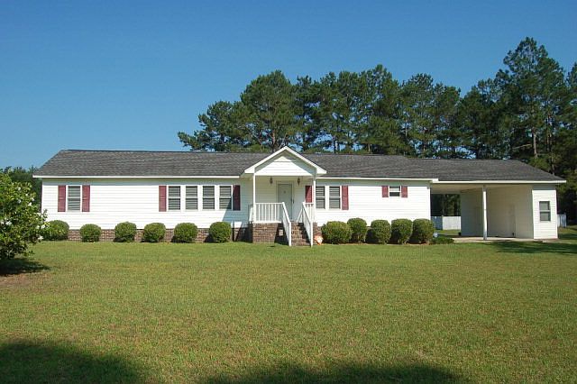 Well cared for and upgraded mobile home on 3.88 acres near Lake Marion. Home offers a master bdrm w/double closets, bath with tub and sep shower, office w/access from the master bdrm, 2 additional bdrms w/private bath access to shared bath, liv rm with gas log fp, dining room, beautiful laminate flooring, tiled kitchen counters, double carport w/storage rooms, 2 security lights and alarm system.