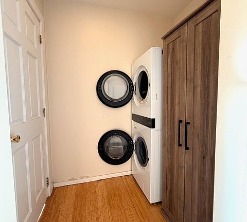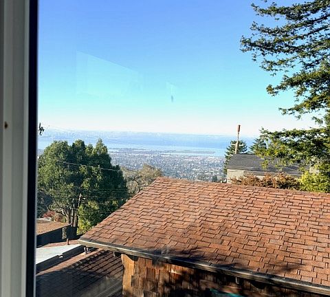 Spectacular Bay views from bedroom and living room. This is an unfinished downstairs unit of a single family house. Upstairs unit is currently rented out. Utilities are shared with upstairs' tenants. This unit has one bedroom and one newly updated bathroom. New stack up washer and dryer are inside the unit. New fridge. There are 50 steps from the street to the front entrance. Tenant is responsible for upkeeping the front yard and meeting City of Berkeley's fire defense vegetation requirements. The craw space which is accessible from the unit is not included in the lease and can not be used as storage . No sublet. No smoking. No pets. No smoking. Utilities are not included, share utility cost with upstairs tenant, get your own internet service.