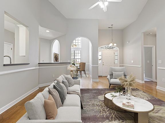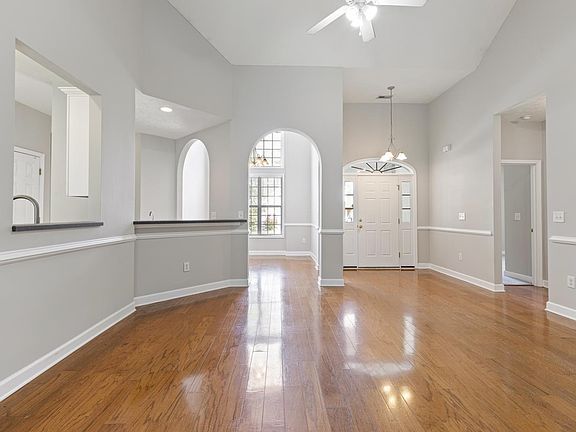 Move-in ready, convenient location, and affordable. If that's what you're looking for, this 3-bedroom, 2-bathroom ranch in Jessica Lakes is the house for you! Fresh paint, highceilings and stunning archways greet you through the front door. Chair rail and hardwood flooring flows through this open floor plan from the foyer through to the living room and dining room. Both bathrooms, the kitchen, breakfast nook, and laundry area have tile flooring. The laundry area, with a full-size washer and dryer (both convey!) is located between the kitchen and entrance from the attached 2-car, side load garage. The kitchen also features stainless steel appliances and a wet bar, and both have clear site lines to the living room. The large living room feels even larger with its vaulted ceilings, and is centered around the fireplace with built-in shelving just above it. Just off the living room is the screened porch, complete with a ceiling fan, leading to the patio and large, wooded backyard with a fire pit...perfect for entertaining! Back inside, the split floor plan allows the large master bedroom to enjoycomplete privacy, and features a tray ceiling and en suite with a double sink, jetted tub, walk-in shower, walk-in closet and linen closet. All three bedrooms have ceilings fans and brand new carpet. This truly is a low maintenance home with vinyl siding (with brick accents) and gutters, and the seller is offering a one year home warranty for added peace of mind. With its convenient location, low HOA dues, no flood insurance required, and no city taxes, you can't afford NOT to check this one out! Some photos in this listing have been virtually staged.