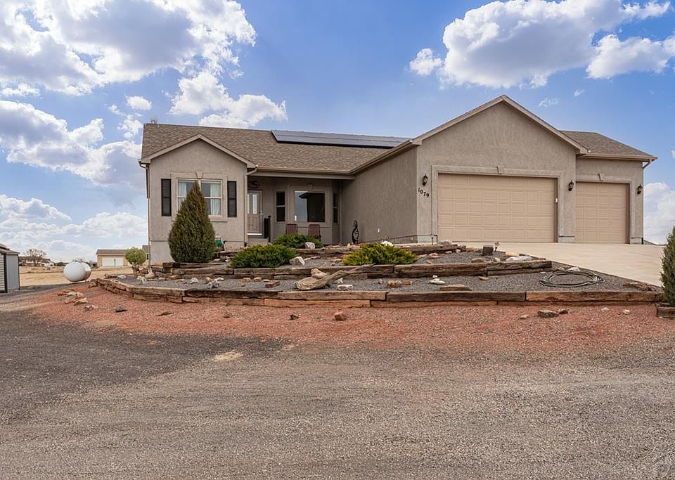 THE PUEBLO WEST GEM YOU HAVE BEEN WAITING FOR. MINUTES FROM HWY 50 AND I-25 AS WELL AS ALMOST WALKING DISTANCE TO THE RESERVOIR. WONDERFUL CURB APPEAL AS THE HOME SITS UP HIGH TAKING IN THE MILES OF MOUNTAIN VIEWS FROM THE FRONT PORCH AND THE AMAZING VIEW OF PIKES PEAK FROM THE BACK DECK. OPEN FLOOR PLAN DESIGN THAT FEATURES A LARGE KITCHEN WITH PLENTY OF COUNTER AND CABINET SPACE. THE MAIN LEVEL LAUNDRY IS JUST OFF THE MASTER SUITE AND 5 PC MASTER BATH. ELECTRIC BILLS ARE KEPT LOW WITH SOLAR AND THE POSSIBILITIES ARE ENDLESS WITH ALL THE WIDE OPEN SPACE ON THE OVER 1.5 ACRE LOT. GAS FIREPLACE, SUNROOM, 3 CAR GARGAGE AND TANKLESS HOT WATER HEATER ARE JUST A FEW OF THE MANY FEATURES TO BE ENJOYED WITH YOUR NEW HOME. ALL NEW HONEY-COMBED SHADES THROUGHOUT THE ENTIRE HOUSE AND FULLY FUNCTIONAL DRIP SYSTEM IN THE BACKYARD WATERING THE 13 NEW TREES AND 9 NEW BUSHES/SHRUBS. NEWELY BUILT DECK AND BOARDWALK. THIS ONE HAS NOTHING TO DO JUST MOVE IN!