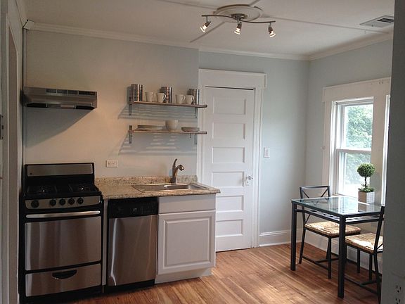 Remodeled 4 room apartment; bedroom, living room, eat in kitchen, plus extra room great for office, den or guest. All new stainless steel appliances including dishwasher. Three season porch. Private back yard. Quiet neighborhood. Excellent commuter location just blocks from town center, waterfront and train station; easy on/off route 95. Washer/dryer hook ups; Cable and high speed internet available. Off street parking, storage. Energy efficient gas heating & gas oven. 2 months security, 1 year lease, references & credit check required. Owner pays for water, lawn care and snow removal. Tenant pays for gas and electric. Town provides trash removal. No pets. No smoking. Off street parking for 1 car.