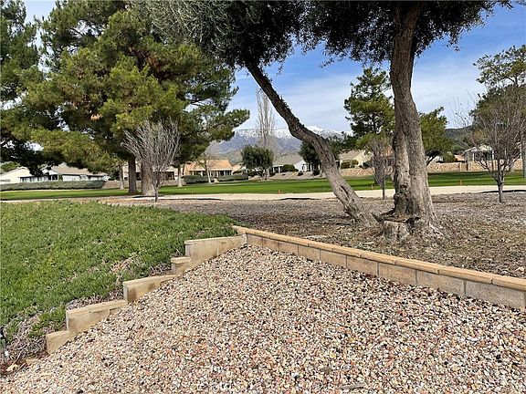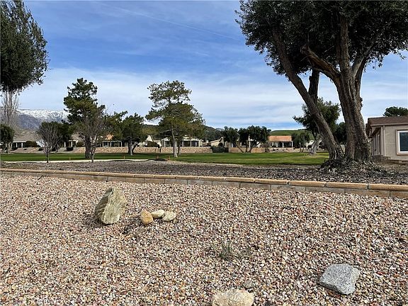 This wonderful home is located in the desirable 55+ Highland Springs Country Club community in Cherry Valley, SCGA rated 9-hole golf course which is free to homeowners and guests, recreation center with club house, heated swimming pool and spa, pickleball, gym and other amenities This 3 bedroom two bath 1628sqft home is the largest floor plan offered in the community. Enter to a spacious living room with vaulted ceilings with an open floor plan that has a fireplace just waiting for you to relax those winter nights! Property is located on the golf course with view of the course and surrounding foothills and mountains.