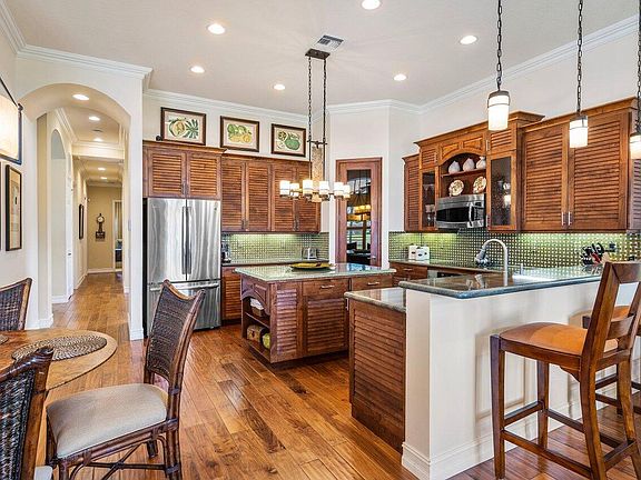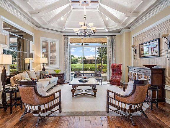 This gorgeous Lydia is a former builder's model with tons of custom decorator upgrades. The home features 3 bedrooms plus a den, 2.5 baths and an expanded screen enclosed patio situated on an oversized lot, overlooking a beautiful private lake (no littoral plants in lake). Upgrade highlights include impact glass double door entry, several kitchen & bathroom upgrades, decorator lighting and hi hat fixtures throughout, newer appliances, crown molding, storm shutters, and so much more! Everything this home offers is just walking distance from the clubhouse where you'll find tons of amenities including tennis, pickleball, state of the art fitness center and a Cafe to name a few. HOA Fee includes exterior painting of house, lawn care, alarm monitoring, cable and internet and so much more.