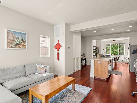 Freshly updated in 2021, this end-unit condo is filled with natural light and thoughtful upgrades. Inside, enjoy new bamboo flooring throughout, newer appliances, and an added breakfast/coffee bar off of the kitchen with additional counter space and soft close cabinets. The open kitchen is designed for both everyday living and entertaining, featuring a spacious island, gas stainless steel appliances, an eating bar, and ample cabinet space. A cozy family room with a gas fireplace opens to a private balcony, while the upstairs bonus space offers flexibility for a loft, home office, or media area. The primary suite includes its own attached bathroom for comfort and convenience. Additional highlights include a 120 SF storage area in the garage and a newer A/C unit for peace of mind. Perfectly situated in a walkable neighborhood near Tanasbourne, New Seasons, Target, and the MAX Line, with quick access to HWY 26, this home blends style, comfort, and unbeatable convenience.