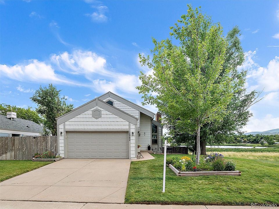 Have you been dreaming of a home that backs to a picturesque pond? And has mountain views, miles of paths and a Park to enjoy? Yet, still close to all the amenities that Littleton has to offer. This is the home you’ve been dreaming of! A beautiful three-bedroom, two-bathroom, open floor plan home in sought after Foothill Green on one of the VERY BEST lots. The main floor features a bright, spacious kitchen with beautiful tile floors, ample cabinet and counterspace, recessed lighting and newer appliances. The Kitchen is open to the dining area with deck access, where you will want to enjoy your morning coffee as you overlook the pond and gaze at the mountains. Or end your day with a glass of wine while enjoying the sunset. The automatic awning will keep you comfortable on the sunniest of days. Back inside, you'll appreciate the spacious living room with windows that fill with the same views and fill this home with natural light. In the winter months you'll enjoy the cozy gas fireplace. The main floor laundry with great storage and a powder bathroom finishes this level. Upstairs is the spacious primary bedroom with a beamed ceiling, (those same views!) full bath with heated floors and a soaking tub and the second bright bedroom. The walk- out lower level boasts a large family room, another large bedroom, three-quarter bathroom and multiple storage rooms. The fresh paint, new carpet, upgraded windows, doors, and plantation shutters are just a few of the improvements. Other features include a two-car garage with built in storage. Nice sized fenced and landscaped yard, patios front and rear and colorful flowerbeds too. The neighborhood provides miles of paths, Blue Heron Park and shopping nearby. Easy access to downtown, Red Rocks, the mountains and so much more. Properties like this one are rarely available. This is a Must-See Property!