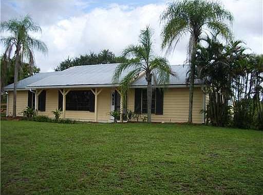 3/2 Equestrian Ranch on 2.5 beautiful acres in the Wellington area with a CBS Barn that has a separate office and a garage/storage area with a 16' roll up door. House has a bright open living space with split floor plan, and a spacious kitchen, stainless steel appliances, skylight & volume ceilings. The house also has an enclosed 40' x 14' tile Florida Room. Property also has a separate Pole Barn with an enclosed tack/feed room and wash area. Pastures are fenced for horses with plenty of room for turn-out. Property has a private pond as well.House square feet are approx. verified by buyer.