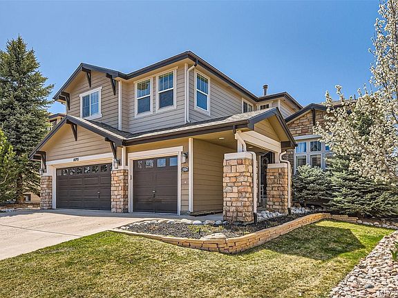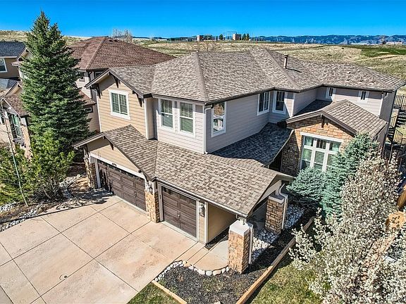 Step inside this beautifully updated and well-maintained home, backing to vast open space and incredible mountain views. Walk out the back gate for easy access to the open space trails or take advantage of the spectacular mountain views from the elevated deck outside the owners’ suite or from the covered outdoor patio below (built 2019). The covered patio offers outdoor living at its finest. Cozy up by the gas fireplace and watch the game while making your favorite meal on the built-in gas grill. The granite counter provides plenty of space for everyone to enjoy their meal while taking in the sunset over the mountains. This home boasts 5 bedrooms, 5 bathrooms, finished basement, and 3 car garage. 4 bedrooms upstairs and 1 on the main level. The kitchen is a chef's dream, with a large island, granite counters, French door refrigerator (2021), double oven (2021), 5 burner gas cooktop, wine fridge and cabinets galore. The adjacent breakfast nook features great views of the open space and mountains and shares a fireplace with the family room. On the main floor, you'll find a guest bedroom and updated 3/4 bathroom, as well as a family room, formal living room, dining room and butler’s pantry. On the 2nd floor, the owner’s suite features a two-sided fireplace, sitting room, attached bathroom with jetted tub and separate shower plus a spacious deck to enjoy your morning coffee while taking in the mountain views.There are also 3 more bedrooms, two sharing a hallway bathroom and one bedroom with its own ensuite bathroom, along with a large loft and study area. The finished basement, includes a spacious wet bar, a large ice maker, sink and wine fridge, as well as a media room and game room complete with half bath. Mechanical features include a new furnace and A/C (2017), central humidifier (2023), two 50-gallon hot water heaters (2015-16), water softener, radon mitigation system, sump pump, and irrigation system with wifi-enabled controller (2023). Roof replacement (2015).