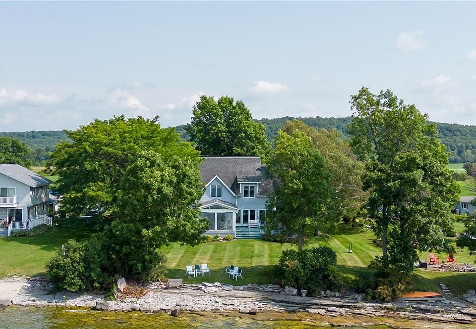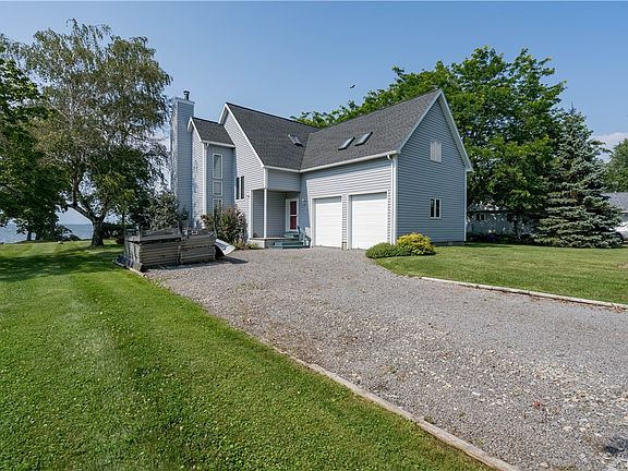 MEMORIES MADE HERE - Spacious & Spectacular is the way to describe this 1 owner impeccably maintained partially furnished waterfront property located on beautiful Lake Ontario. Start your day with a beautiful sunrise, enjoy a fun filled day in the sun on the lake & end the day w/ a gorgeous sunset. This home offers an open floor plan with lake views from the living room, dining area, 3 season sun porch & 2 of the upstairs bedrooms. The main floor of living offers a large fully applianced kitchen w/breakfast bar & dining area, large living room w/french doors to deck that overlooks the waterfront, beautiful 3 season sun porch w/access to the deck, yard & waterfront, 1st floor primary bedroom & bath, 1st floor laundry and on the 2nd floor there are 2 bedrooms overlooking the waterfront, 2 full baths and another huge bedroom that could easily sleep 8 people. Outside there is a beautiful landscaped yard w/100 ft. of waterfront, 180 ft. dock (not currently in the water but will stay w/property), 2 car garage & more. This home has year round access & could be used year round w/a few modifications. This is a must see property so don't delay, call today & start enjoying Life on the Lake!!