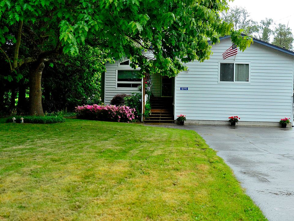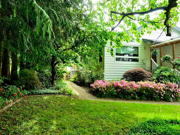 Lovely home on large country lot. Spacious kitchen w/lots of cabinets, island with cook top/oven, all appliances stay. Vaulted ceilings in cozy living room w/wood burning frpl. French doors open into delightful great room w/built in window seat. Wonderful multi level deck, garden space, hot tub, garden shed, & room to park an RV. Double gate access to park-like back yard. Rainier & pie cherry & apple trees, raspberry bushes & grapes. All dimensions are approximate buyer to verify.