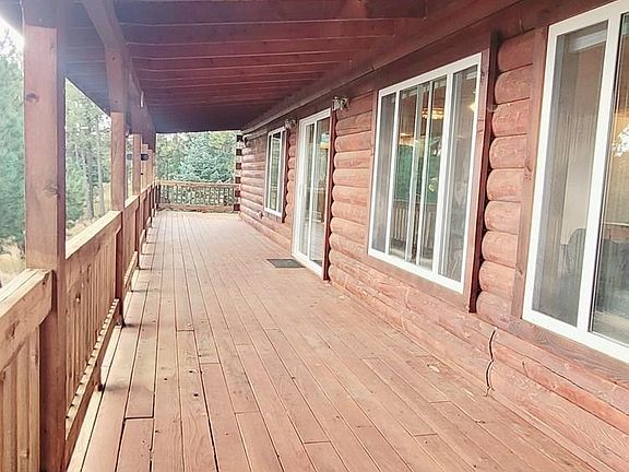 This attractive Log cabin style home on 5 Acres Overlooks the entire Greenhorn Valley! This 4 bedroom 3 bath sprawling ranch house with a walkout basement is really a Must See! The custom tongue and groove walls and vaulted ceilings add to the completely open Floor Plan. The kitchen has all new granite countertops, new stainless steel appliances and a massive island that leads into the great room. The Patio door opens to the wrap around covered deck bringing over 1200 sq ft of outdoor living space to take in the breathtaking scenery. The Master Bedroom has its own sliding glass door that leads to its own deck to enjoy natural light and clean Mountain air. The buyer can also relax in a jetted whirlpool tub in the master bath. The laundry room with new appliances is on the main level with a mud sink, counter space and additional cabinet storage. The walk-out basement is completely finished with contiguous accents, huge living room, 2 non conforming bedrooms and a full bathroom. There is a two-car attached garage with an organized storage system. The detached Shop/4 car garage has front and back garage doors for ease of access along with electricity and a stairway that leads to a loft. The Home and Garage both have Metal roofs. There are 3 large sheds on this property for additional outdoor storage. If starting each day with a glorious sunrise and being surrounded by peace and serenity sound good then this is the home for you.