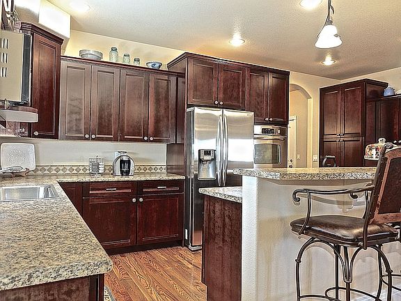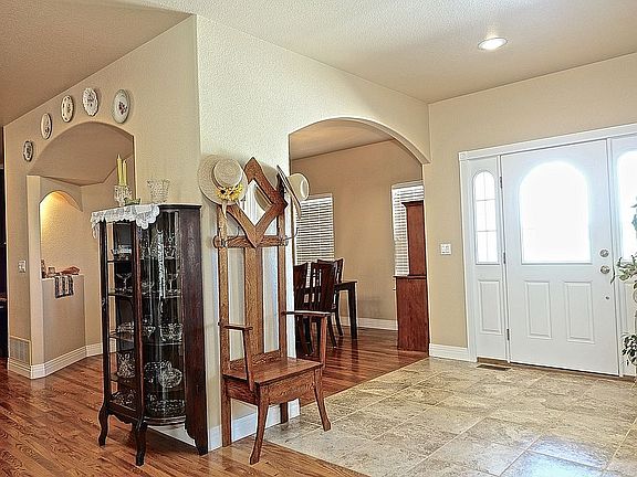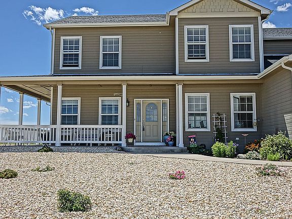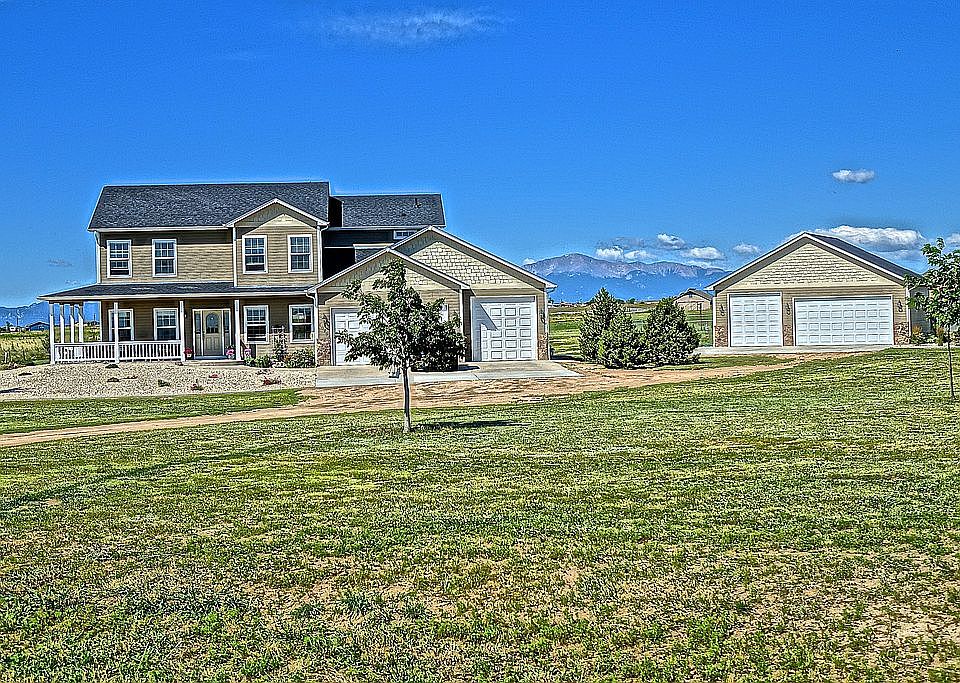 Picturesque Covered Front Porch Welcomes You Home & Beckons You to Enjoy! Stunning 2-Story Home on 5 Beautiful Acres with 3-Car Garage PLUS 3-Car Detached Matching Finished, Insulated & Heated Garage/Workshop w/Concrete Flooring, Sink & Cabinetry with Attached 60'x60' Chain-link Fenced Dog Run! You will Love the Open Floor Plan with Polished Hardwood Flooring in the Kitchen, Nook, Dining Room & Office! Cozy 2-way Gas-log Fireplace Between the Sunken Living Room & Kitchen Nook! The Kitchen Features SS Appliances: 5-Burner Gas Stovetop, Double Ovens, Microwave, Dishwasher, Side-by-Side Refrigerator! Lots of Upgraded Cabinetry Including Desk Area! Very Spacious Master Bedroom w/Private Adjoining 5-Piece Master Bath w/Jetted Bathtub, Raised Vanity with Dual Sinks, Lots of Cabinetry, Private Commode Room, Separate Shower, and Enormous Walk-in Closet! 3 Other Large Secondary Bedrooms and a Large Full Bathroom Complete the Upstairs! Reiner Hot Water Heater! Great Garden with 4 Raised Beds, 15 Fruit Trees and 5 hydrants on the Property! Paved Access, Stunning Pikes Peak Views! Immaculate & Truly Move-in Ready!