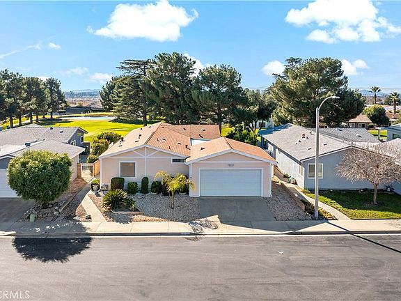 PRICE IMPROVEMENT!!LOCATION, LOCATION, LOCATION!! Welcome to Highland Springs Country Club. This is an active 55+ GATED Community. The amenities include, FREE GOLF for residents and up to 5 of their friends can also play for FREE!! UNLIMITED FREE GOLF! In addition there are pickleball courts, tennis courts, a large clubhouse, pools, spas, and exercise area to name a few. This home is located right on the green! Your covered alumawood patio faces hole 1 on the golf course! If you are a golfer, look no more! Recently renovated with neutral carpet throughout,neutral paint throughout, freshly painted kitchen cabinets, with a water purifying system under sink, a new roof, new sewer line, new exterior paint, tons of windows with lots of natural light, view of the golf course, mountains, and water fountain near the clubhouse! This home has beautiful open lay out, large side yard with a covered alumawood patio, an orange and lemon tree! Lots of room to entertain, and BBQ on those warm summer nights! Guest bedroom has a sliding glass door that opens up to the patio. There is a 2 car garage, with a water softener, washer and dryer. Don't miss this opportunity to enjoy an active lifestyle in a great community.. Did I mention the HOA is only $200 per month?