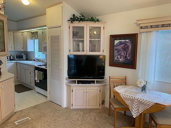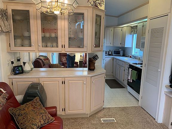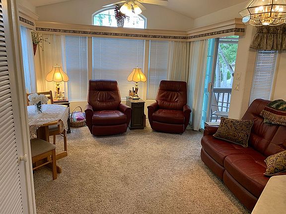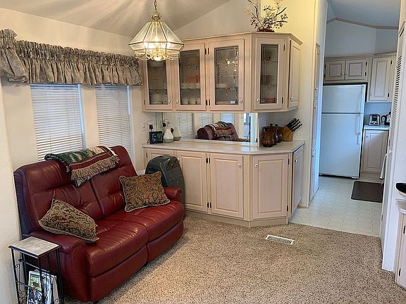2001 Cavco Desert Rose Park Model with 190 SF add on room, 10' X 15' covered patio. Furnished, includes all appliances, refrigerator/freezer, gas range, microwave, washer, gas dryer, ceiling fans, window fans, gas central heat, electric fireplace. New carpet 2015, new roof 2018. 50 Amp Electrical service, propane tank included. Extra room has sofa bed for guests.