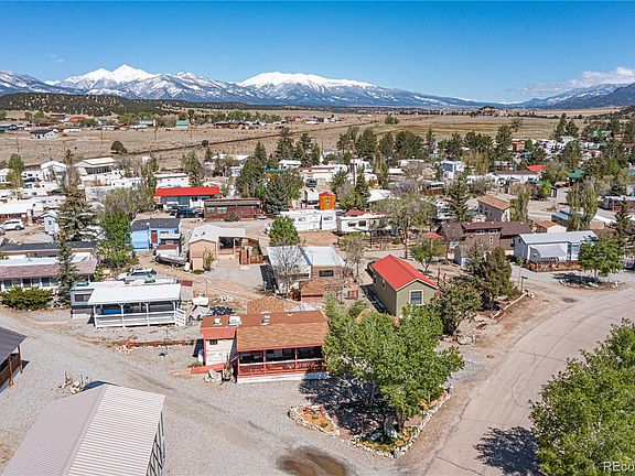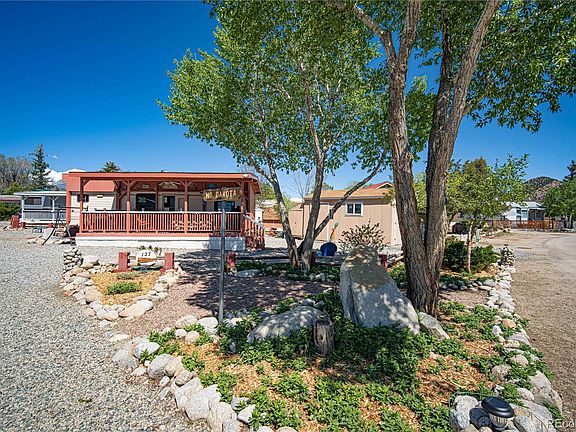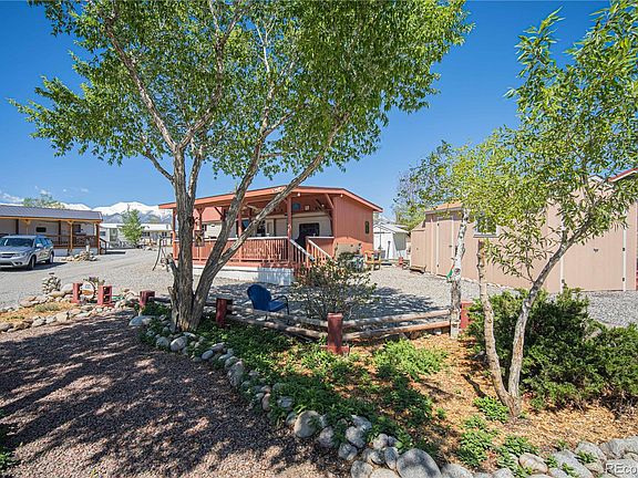 Chateau Chaparral is located between Salida and Buena Vista in its own little oasis. This corner lot is perfectly positioned in the park with million dollar views of Aspen Ridge and easy access off the main road with its own gravel circle driveway.  Unbeatable views on the 10x23 covered front porch deck. Turn key opportunity with everything included in sale price  Appliances, Kitchenware, Linens, Patio Furniture, Gas Fireplace. This unit is fully enclosed and roofed over, beautifully landscaped outdoor area that is easily maintained. Entire residence has been re-insulated and has propane forced air heat along with A/C. Take advantage of access to the Arkansas river on both sides through a HOA funded suspension bridge along with the community clubhouse. 10x18 Shed that has water and electric connected is included in sale. Upgraded electrical approved by Sangre de Cristo