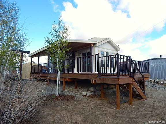 This is an adorable CAVCO Park Model that has a custom composite wrap around deck with metal railing that you will use every day to sit out and listen to the roaring sounds of the Arkansas River! The lot is double in size, being .136 of an acre located on the very Northeast corner of the park. You can hear the river, but you cannot see it. It's very close and easy to walk down to. The back yard has lots of room and a neat fire pit to enjoy in the beautiful summer evenings. It comes fully furnished including all china, glasses, silverware, plates, bedding and shower curtain. The living room is on the east side, looking down to the river. Nice size kitchen with pantry, tile flooring and all appliances are included. The primary bedroom has a queen bed with a hydraulic lift underneath storage which is wonderful to have. In the back yard there are beautiful Irish flowers, aspen trees and 2 rhubarb plants. A very nice storage shed on the west side. The clubhouse is open year round with laundry facilities, access to the river and lots of activities going on. This lot does have winter water and the upgraded electric 220 amp service. If you love Chateau Chaparral you gotta see this one! Call now for a private showing.