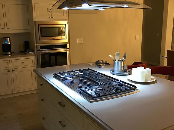 This is a two story house: The second floor is accessed by a stair way (carpeted) that ends on a center hallway that is carpeted. The Master bedroom is carpet, laundry room is vinyl, walkin closet is carpeted, bathroom is tiled, all are accessed off of this hallway. The end of the hallway terminates into a carpeted office/potential bed room. On the second floor is the large Master bed room, with a large center window opposite the King size bed, looking out this window the view is of a plowed pasture, and there is another window in the Master bedroom that looks out on to the second floor deck. The Master bedroom has a king size bed, upholstered bench in front of the bed, two recliner chairs, two occasional tables, and two large dresser/mirrored night stands with lamps. On this floor is also: a large walk-in closet, a large laundry room with lots of cabinets and a washer and a dryer, a bathroom with two large vanities with silistone tops (one on each side of the room), a deep soaking tub combination shower, with seating ledges on two sides, all behind a two operable doors and one fixed panel glass enclosure. The shower/tub is tiled In the shower/tub is is a window that looks out on vineyards. There is also a large room presently used as an office (could be a bedroom but this use is not officially permitted), in this room is a sliding door that opens onto an outside deck with a view, and three other windows. All floors in the entry, living room, dinning room, and kitchen are porcelain. Front door enters onto a small entry vestibule, with a table facing the door and a guest closet to the right. Continuing into the living room, you will pass a large storage room built under the stair way. The living room has a gas fireplace on one end, above which is a flat panel TV connected to Xfinity/comcast. there are two attechairs to the right and left of the fireplace. There are large sliding glass doors off the living room and off of the kitchen. These are by Pella and they look onto a large hard wood deck/with an oak tree growing out of is. The living room is furnished with coffee table, sofa, and occasional chair (all modern furniture). Next to the living room area is the dinning area.. It has a glass and stainless steel table with chairs for 6 people, with designer lighting over the table. There is a large cabinet at one end of the dining area for china storage, etc. Next to the dinning area is the kitchen. There is a center island with a gas cook top, the counter is silistone and it has three tall chairs that belly up to a counter. Above the center island is a modern stainless steel hood with lighting. The sink counter, cabinets are at the end of the kitchen and wrap around to contain the oven and mirco waive. Off of these living rooms is located the second bathroom with a show and vanity. Off of a small vestibule is the second bedroom with a closet two fixed windows and one sliding glass door that looks out onto a deck. This room is furnished with a couch that is a hide-a-bed, night stands and lamps. This room is carpeted. There is also detached separate 2-1/2 garage. Home is approximately 2,000 square feet Rent is $6,000 per month There is a $50.00 application fee per applicant Deposit depends on application