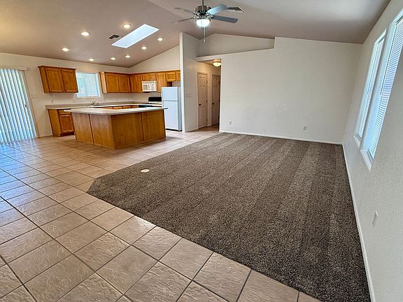 Three bed, two bath, 2 car garage home in Mesquite at Mesa Del Sol. The kitchen is equipped with a dishwasher, refrigerator, gas stove/oven, and a unique L-shaped island. Features also include a reverse osmosis system, skylight, and a convenient hall pantry and coat closet. The tiled dining area is situated next to the sliding glass doors to the covered back patio. The primary bedroom is complete with a large closet and an en-suite bathroom featuring a walk-in shower with double shower heads and double sinks. Updated carpets in the living room and bedrooms. The home also includes a laundry room with washer/dryer hook-ups. Located near the I-8 and shopping centers. https tour.pivo.