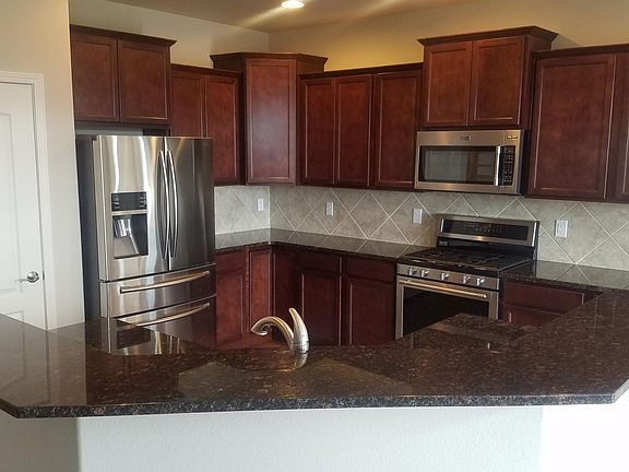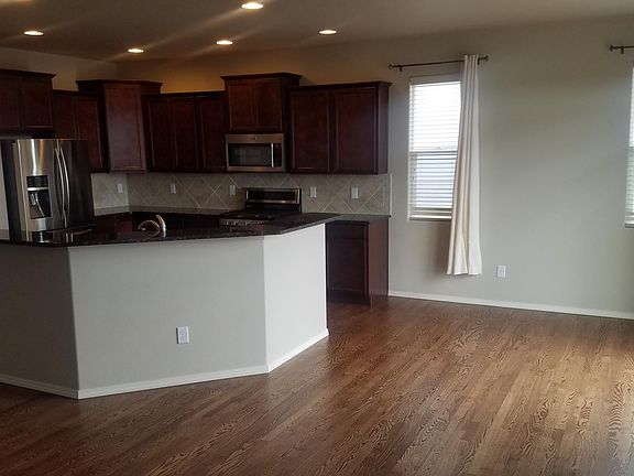 New ranch style home located just off powers within walking distance to Pine Creek High. The main level includes an office 1/2 bath laundry room and a connected living room and kitchen with real hardwood floors granite countertops and dark cherry cabinets (all appliances included). Amazing view of the mountains from the living room patio and master bedroom. Master bathroom includes: tile floors granite countertops walk in closet and large custom walk in shower. Large downstairs finished with carpet full size bathroom with tile floors and granite countertops and two bedrooms. Low maintenance community requires no upkeep by the tenant grass and plants are managed by the HOA HOA is paid for by the landlord.