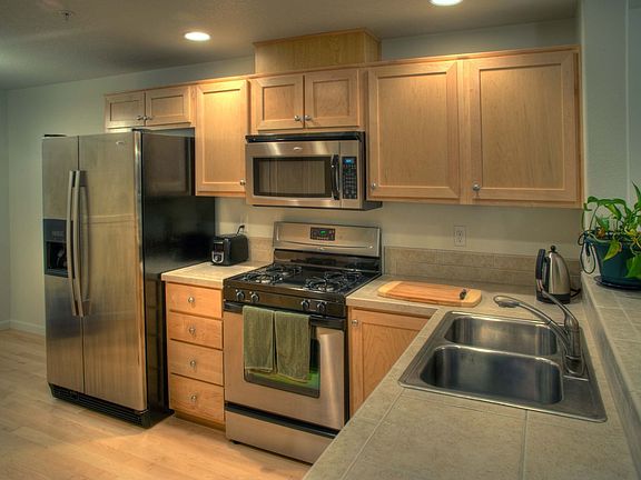1380 sq ft, two level, 3 bedroom condo / townhome located in Tigard. Tile counters, solid hardwood throughout main level, gas range, patio. Easy living -- HOA does all the yard work! - 1380 sq ft + 1 car attached garage - 3 bedrooms, 2.5 baths - Maple hard wood floors on main level, carpet in upper level - Master bedroom with views! Vaulted ceilings, master bath with 2 sinks, and full-size walk-in closet - 2nd bedroom with vaulted ceilings - 3rd oversized bedroom - Washer/dryer included - Gas fireplace / gas furnace / gas cooking - Patio with mature treed landscaping- green and beautiful. Provides privacy. - Double walls between adjacent units for extra sound barrier privacy - Access to the community's beautiful nature park - Templeton Elementary School, Twality Middle School, Tigard High School - Easy access to downtown Portland on Trimet bus lines (2 minute walk to bus stop) - Easy access to 217 and I5 Owner pays water/sewer. Tenant pays for gas, electric, internet, etc.
