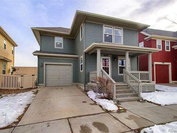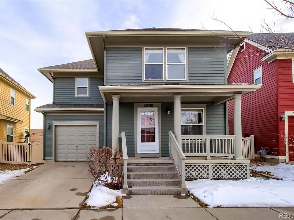 Must see BEAUTIFUL 2-story home in the charming Belle Creek neighborhood. Main level is highlighted with an OPEN CONCEPT living area. Large living room enhanced with lots of windows that allow for plenty of natural SUNLIGHT. Eat in kitchen with HARDWOOD FLOORS, black appliances, large cabinets and KITCHEN ISLAND offers plenty of storage space. Sliding glass doors give access to the private, FENCED back yard. Upstairs you will find a spacious MASTER bedroom with EN SUITE FULL BATHROOM, and WALK IN CLOSET. Two more generous size bedrooms with lots of closet space, and another full bathroom with DOUBLE SINK VANITY. Discover more space in the unfinished full basement that allows for ample storage or to create the space you desire. Covered front patio is perfect to relax after a long day. Home also has a WATER SOFTENER and roof and gutters were just updated in 2020. Belle Creek is an amazing community with events such as Block Parties, Holiday Celebrations, Movies in the park and other happenings that brings the neighborhood together. Enjoy the COMMUNITY CENTER with a fitness facility, basketball court and other amenities. Quick stop STORE in the community. No need to worry about monthly HOA fee as it is covered in property taxes. Enjoy a short walk to the PARK and PLAYGROUND. Easy access to Hwy 85 can get you anywhere in the city. This property has been well cared for and ready to make it your new home. Buyer- please verify school district information.