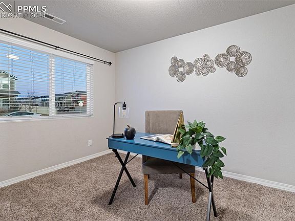 Welcome to this extremely popular Van Buren model by Challenger Homes, backing to parks and open space, and with unobstructed front range mountain views! The Van Buren floor plan is located in the beautifully maintained Ventana Community, one of Fountain’s highly desired communities that offers the residents a multitude of walking and biking trails, parks, gathering spots, and a community center that includes a workout facility and a beautiful pool and hot tub! Come on in, and prepare to fall in love with this meticulously maintained 3 bed, 2.5 bath, 2 car garage home. You will be immediately greeted with a functional office that resides behind French doors, before continuing past the half bath and into the living room that boasts large windows inviting in plenty of natural light. The kitchen is the hub of this home, featuring all stainless-steel appliances, beautiful granite countertops, plenty of cabinet space, an eating area, and a spacious center island that is the perfect place to prepare all of your meals. The kitchen spills into the family room, with a walk out to the covered back patio, giving you the ideal area to entertain your family and friends! Upstairs you will find a spacious loft- a perfect secondary living area for movie nights, or to utilize as a playroom/craft room! Off of the loft, enter the master retreat, featuring a luxurious en suite master bath and walk-in closet. Two additional secondary bedrooms, both with walk-in closets, a full bathroom, and an upstairs laundry room complete the upper level. Enjoy this stunning backyard where you will find privacy fencing, mountain views for days, and a stunningly landscaped yard. This community has convenient commutes to Peterson SFB, Schriever SFB, Fort Carson, and Cheyenne Mountain SFB, as well as easy access to Powers Blvd and I-25. This home is an absolute MUST see- homes backing to open space with unobstructed mountain views are an extreme rarity! Come make this home yours before it is too late!