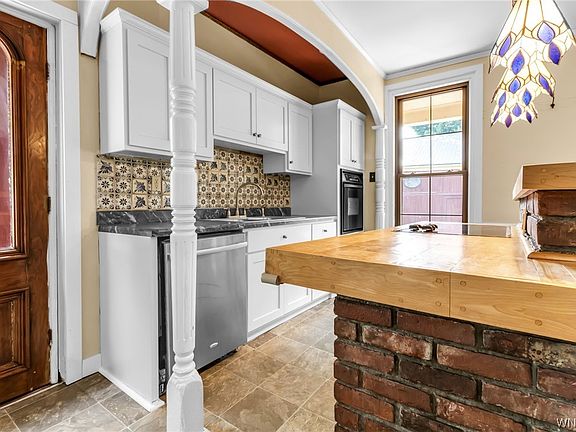 Nestled in the serene countryside just outside the charming town of Lyndonville, this magnificent 3,400 sq.ft. Brick Italianate home offers an exquisite blend of timeless elegance, rustic charm, & modern comforts. Situated in a picturesque setting and conveniently located close to local amenities, this residence embodies the epitome of refined country living. As you approach the property, you are greeted by a meticulously landscaped front yard adorned with vibrant flowers and mature trees, creating a welcoming atmosphere. The classic Italianate architecture immediately captivates with its grandeur and sophistication. The exterior boasts a striking brick facade, complemented by ornate detailing, arched windows, and a stately entrance, all reminiscent of the elegance of the Italian Renaissance. Step inside & you are enveloped by the warmth and character of this exceptional home, featuring a seamless fusion of traditional design elements and modern upgrades, ensuring comfort and convenience for today's homeowner. The high ceilings and large windows flood the living spaces with natural light, further enhancing the inviting ambiance. Rare opportunity to own a piece of country paradise.