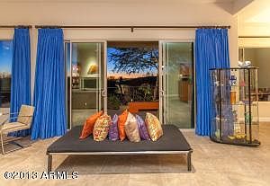 270-degree views of Troon Mountain, Pinnacle Peak, sunsets, Valley lights! Spacious Monterey-built home in Troon Village on quiet cul-de-sac in gated Tusayan. Enter through lush walled garden courtyard. Upgraded Pinnacle floor plan has only two steps from foyer to all living areas. Custom Italian tile floors throughout. Kitchen has granite countertops and backsplash surfaces, Thermador stainless appliances, 5-burner gas cook top, abundant cabinets and walk-in pantry. Custom island offers bar seating, ample prep space, glass fronted cabinets. Den or office off foyer. Second sitting area used as media room. Master bath with two vanities, jetted tub, generous master closet with Classy Closet storage. Separate guest suite with upgraded carpeting. Oversized air conditioned garage with built-in