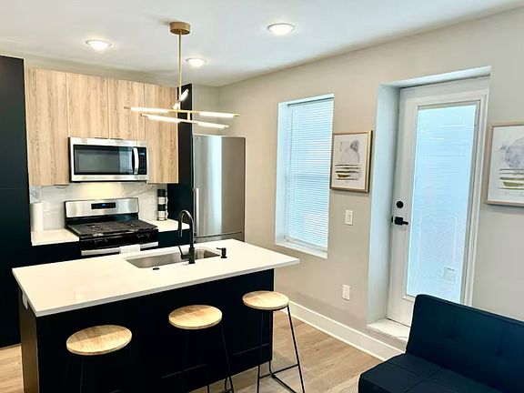 Relax in this serene and stylish space. 2 bedroom fully furnished,Enjoy a full kitchen equipped with a kitchen island and bar stools, along with a living room featuring futon sofas and a large TV. The two bedrooms offer queen beds, spacious closets, and flat-screen TVs. Located just a block from the beach in the second building from the boardwalk, you can easily walk to the casino while enjoying the safety and charm of Atlantic City's Chelsea district.