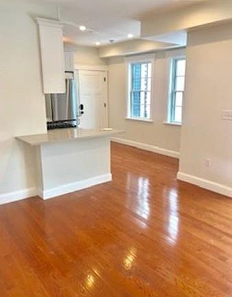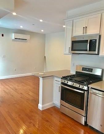 Brand NEW Renovation: Beautiful One bedroom unit offering an Open floorplan concept located on a first floor of a 4 unit building. Unit features a Fully applianced kitchen with stainless appliances with a gas stove, refrigerator, microwave and dishwasher. Gleaming hardwood floors throughout, Central A/C, keypad entrance and patio. Coin operated Washer and dryer in the building and assigned storage space in the basement. 1 off street parking space included. 5 minutes walking into Maverick T Station, 1 stop away from Downtown Boston, Financial District, Aquarium, and another T stop away from the airport. Near Piers park. Area offers local restaurants, supermarkets, tennis courts, YMCA and Boston Public Library at 10 minutes walking distance, EZ Pass discounted for the Sumner, Callahan and Williams Tunnel at .20 cents each way with easy access to route 93N/S, Mass Pike and Route 1/1A. Water transportation also available, East Boston waterfront is the place to be!