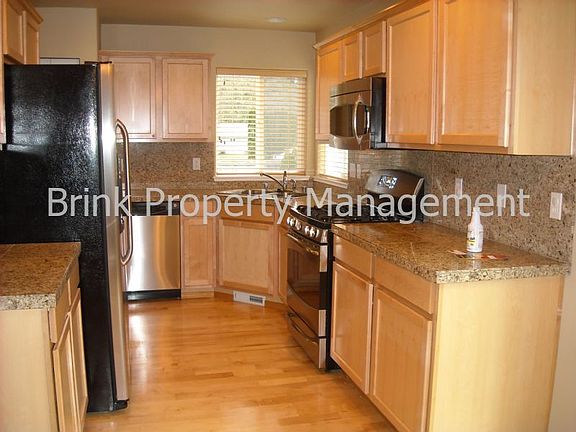 Like new, beautifully maintained home in the Highland Court community. Upgraded carpet plus beautiful hardwood flooring. Formal living and dining rooms. Well planned kitchen features granite tile counter tops and backsplash, maple cabinets and stainless appliances. Kitchen opens into spacious family room with gas fireplace with arched mantle space for entertainment center. Back yard accessible from family room, easy maintenance fully fenced yard. Powder room downstairs. All bedrooms upstairs, plus 2 full baths. Large master bedroom with beamed ceiling and ceiling fan, plus 4 piece master bath and walk-in closet. 3 additional bedrooms, 1 featuring lovely window seating. 2 car garage with remote access. Energy efficient construction and appliances! Great location in quiet residential community, playground behind home. Easy access to freeways, shopping and dining.Available 04/07/14
