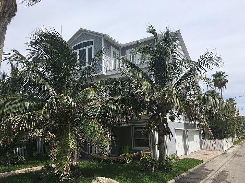 Custom Key West style home nestled in in THE most desirable neighborhood on the Central Florida coast - historic Pass-a-Grille Beach! This 2,613 square foot home with three bedrooms and two and one half baths has an open layout and hard wood floors throughout the home. The third floor master suite is an idyllic retreat with balconies that offers beautiful views of the Gulf of Mexico, the Don Cesar and even glimpses of downtown St. Petersburg. The master bath has dual sinks with granite counter tops and large walk in closet. There are two additional bedrooms on the main floor also with a shared balcony with views of the Gulf. The first floor garage offers storage for three cars and plenty of additional storage.