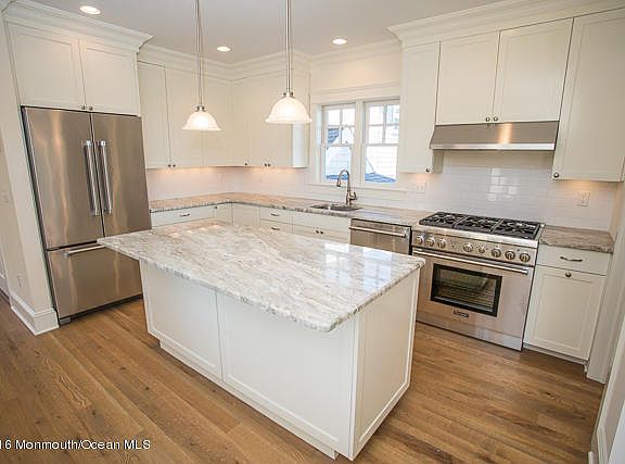 Amazing water views from every level of this spectacular new custom home in Avon by the Sea! 5 Bedrooms & 4.5 Baths make this the quintessential beach home with room for family and friends alike! Thermador Appliances, Granite Countertops, & designer cabinets in kitchen and bathrooms. Fantastic wrap around porch on 1st and 2nd floor with two balconies on 3rd - all offering breathtaking views of the River and Ocean. Designed & built using the highest standards, this home offers low maintenance finishes including all Azek trim, Timberline roof, & natural cedar railings and siding! 1st floor wrap around porch & back deck for enjoying the water breezes! Perfectly located just two blocks from the beach on a dead end along the Shark River - this is a great beach home in an outstanding location!!
