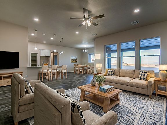 New Custom Home by Holt Construction w/ a open floor plan w/Panoramic Mountain Views! Kitchen features a breakfast bar, granite counters tops w/recessed sink, HUGE walk-in pantry, SS appliances, pendant lights & Quality White cabinetry w/crown molding, soft close hinges & drawers. Owners suite offers room for a sitting area, large Walk-in closet, dbl sinks, relaxing garden tub & separate custom tile shower. Luxury Vinyl Plank flooring through out, NO carpet. Arched passages, 10' ceiling in great room, 9' bedrooms. Tankless water heater, high-eff furnace, REF AIR. Oversized, insulated, finished garage w/epoxy floors & 8' tall garage doors.. Large covered rear patio facing the Mtns for outdoor entertaining . Bk yd access. Generous half-acre lot provides flexibility.