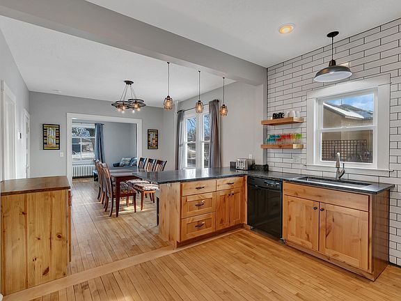 Charming & historical home with some modern updates for the perfect balance of nostalgia & convenience. Many updates throughout while preserving the character. Kitchen offers hickory cabinets, sub tile, open shelving, granite counters and snack bar. Spacious dining room that gives a ton of natural lighting. Good size living room w/an open floor plan to accommodate today's lifestyle. Main floor bedroom & laundry. Both bathrooms have been renovated, slate flooring and custom glass. Home offers 9 ft ceilings, beautiful staircase, knock down ceilings, wood floors, high mop board. 1584 sq ft finished. 2021 new electric & plumbing. Upstairs offers 5 bedrooms, 3/4 shower and linen. 24x28 detached garage is maintenance free siding, cement floors and electric. Close to bike trails, short walk to town and all the amenities.