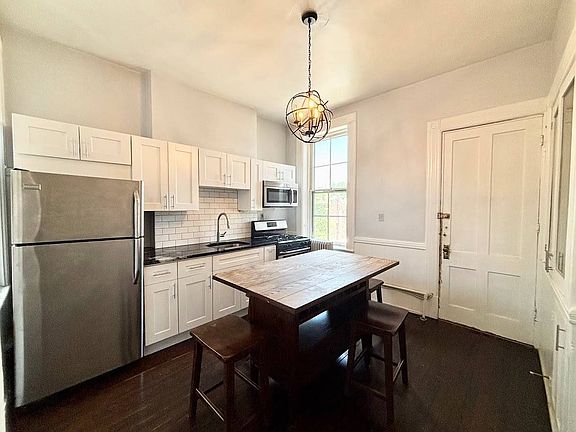 Located in the heart of historic Downtown Troy, NY, this charming 3rd-floor walk-up apartment offers 3 bedrooms and 1 bathroom, ideal for those seeking urban living with character and convenience. The kitchen comes equipped with a gas stove, built-in microwave, and refrigerator, while the full bathroom features a shower/bathtub combo and a window that brings in natural light. The bedrooms, although modest in size and best suited for smaller furnishings, are functional and cozy. There is a mandatory $100/monthly fee for heat, hot water & off-street parking for 3 vehicles. Electricity, cooking gas, cable, and internet are separate. City water, sewer, and trash are included in rent. Tenants have access to a shared coin-operated washer and dryer in the basement. Smaller pets are considered - conditions apply. This apartment is steps away from local shops, restaurants, and scenic green spaces like Prospect Park and the Hudson River waterfront. With its walkable location and access to vibrant community events such as the Troy Waterfront Farmers Market and Troy Night Out, this rental is perfect for anyone looking to enjoy the best of urban living in a convenient neighborhood.