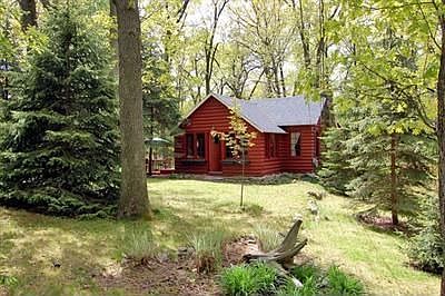 COVETED MICHIANA LOG home set in private wooded site. Filled with sunlight inside and out. Centered on tall fieldstone fireplace and wrapped in spacious deck shaded by mature trees. Room to sleep 6 persons with 2 bedrooms and loft. A short stroll to desirable Michiana beaches on the edge of all of Harbor Country.